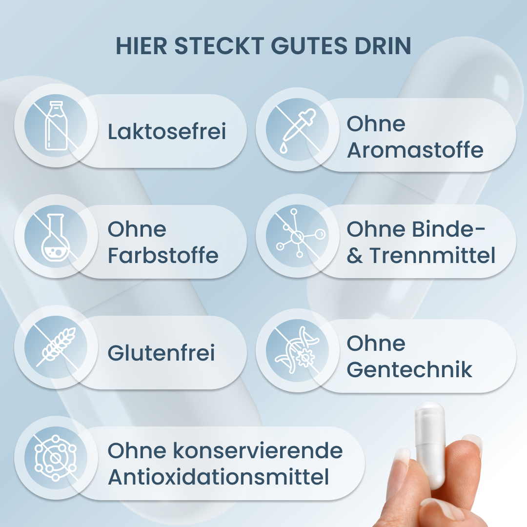 Allerdings stehen wir vor einer rechtlichen Herausforderung: Aufgrund der gesetzlichen Vorgaben, die Nahrungsergänzungsmittel als Lebensmittel einstufen, ist es uns nicht gestattet, detaillierte Aussagen über die spezifischen Effekte der pflanzlichen Bestandteile zu machen. Dies liegt teilweise am intensiven Bestreben der Pharmaindustrie, die Verwendung von nicht chemischen Alternativen einzuschränken.