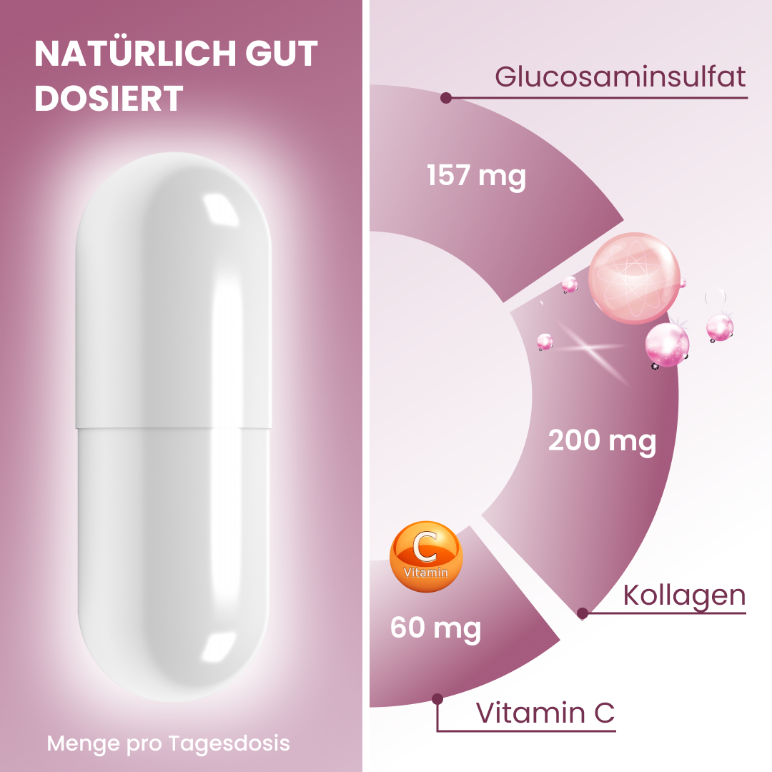 WELLDISC PLUS Kapseln wurden nach aktuellen wissenschaftlichen Ergebnissen entwickelt und unter strengen Qualitätsrichtlinien hergestellt. Diese enthalten unter anderem Kollagen sowie Glucosamin. Zusätzlich enthält WELLDISC PLUS Vitamin C, das zu einer normalen Kollagenbildung für eine normale Knorpel- und Knochenfunktion sowie zum Schutz der Zellen vor oxidativem Stress beiträgt.